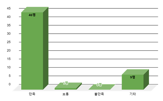 1학년 학부모 총 56명의 응답자 중, 협력교사제가 학업성취도 향상에 도움이 되어 만족했다는 응답이 82%로 가장 높은 비율을 차지했다. 특히나 지속적인 관심이 필요한 1학년의 경우, 담임선생님을 보조할 역할인 협력교사의 필요성에 공감하였다. 또한 기타 의견으로, 주당 4시간 정도로 제한된 협력교사 배당 시간의 확장을 요구하는 의견도 많았다.