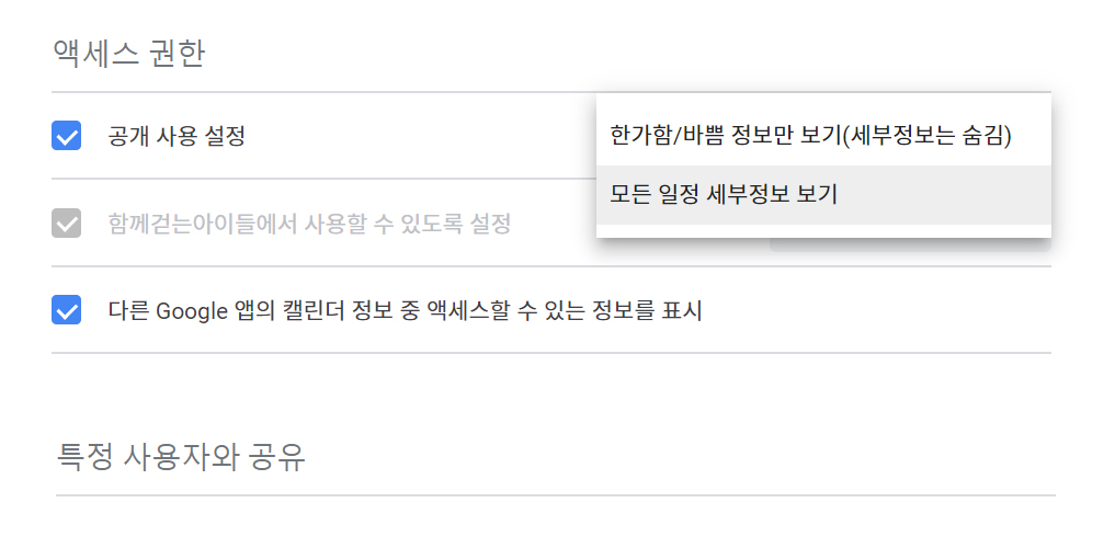 특정 사람들과 공유하고 싶다면, [특정 사용자와 공유] 항목에서 사용자를 추가해주세요.