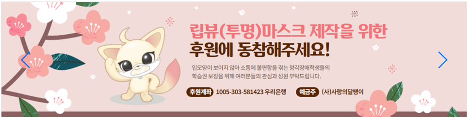 또 7월 20일부터 시작되는 청각장애이해교육과 함께하는 립뷰마스크 만들기 프로그램이 있어요. 단체에서 립뷰마스크를 만들고 싶다고 신청하면 립뷰마스크 D.I.Y 키트와 함께 청각장애이해교육을 같이 수강할 수 있습니다. 무상배포 프로젝트와 함께 많은 관심 부탁드립니다.