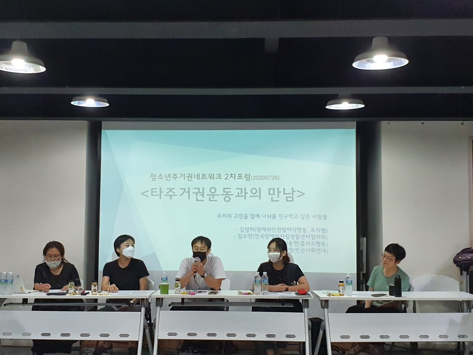 청년 주거 운동(민달팽이 유니온)에 이어 홈리스 주거 운동, 장애인 주거 운동, 반빈곤 사회운동에서 활동하시는 분들과 함께하는 자리였는데요. 인권재단 사람에서 진행된 7월 포럼은 김윤영(빈곤사회연대), 김정하(발바닥 행동), 이동현(홈리스 행동), 임소연(한국장애인자립생활센터협의회) 이렇게 네 분을 만나 심도있는 토의를 나눴습니다.