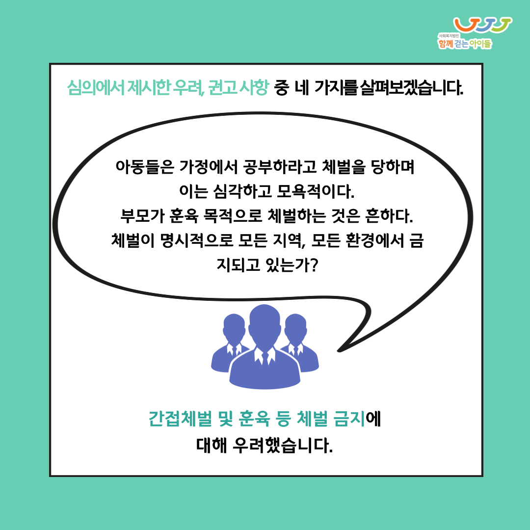 1. 간접체벌 및 훈육 등 체벌 금지에 대해 우려했습니다.