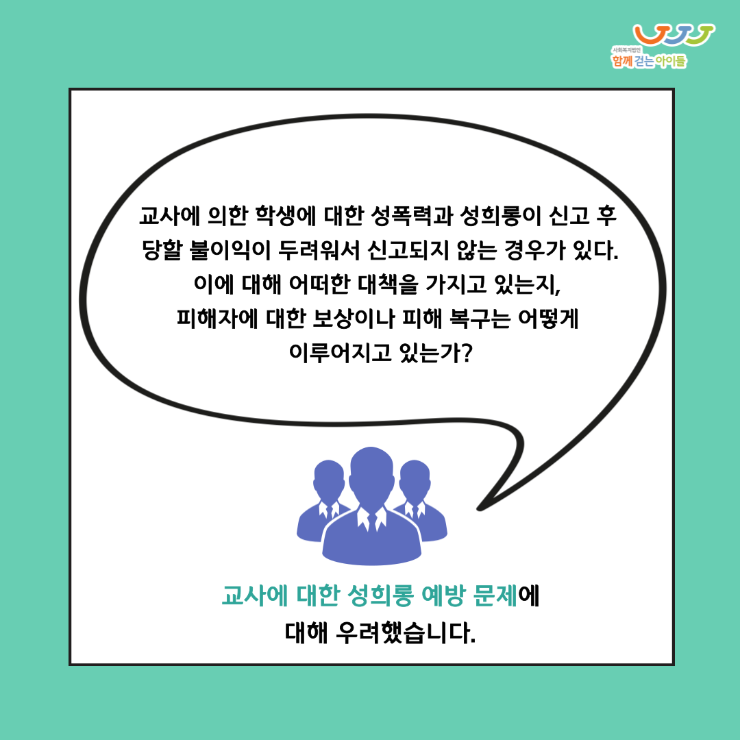 4. 교사에 대한 성희롱 예방 문제에 대해 우려했습니다.