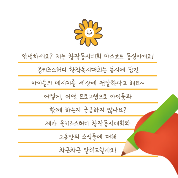 "앞으로 제가 창작동시대회의 모든 이슈를 차근차근 소개해드릴 거예요!