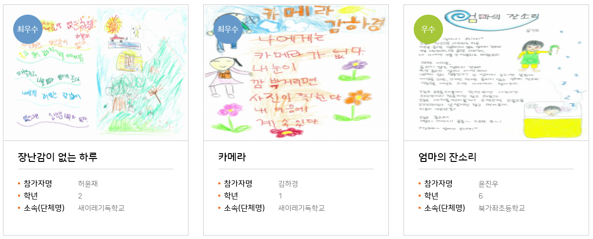 동시 작품들이 궁금하신 분들은 올키즈스터디 창작동시대회 웹페이지 동시갤러리에서