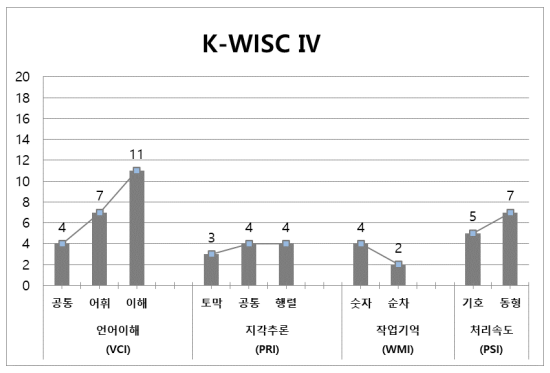 4개 영역의 인지기능(언어이해, 지각추론, 작업기억, 처리속도)이