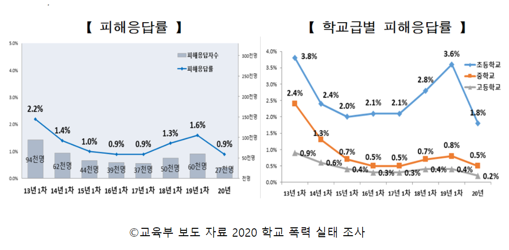 ▶교육부 2020년 학교폭력실태조사 결과 발표