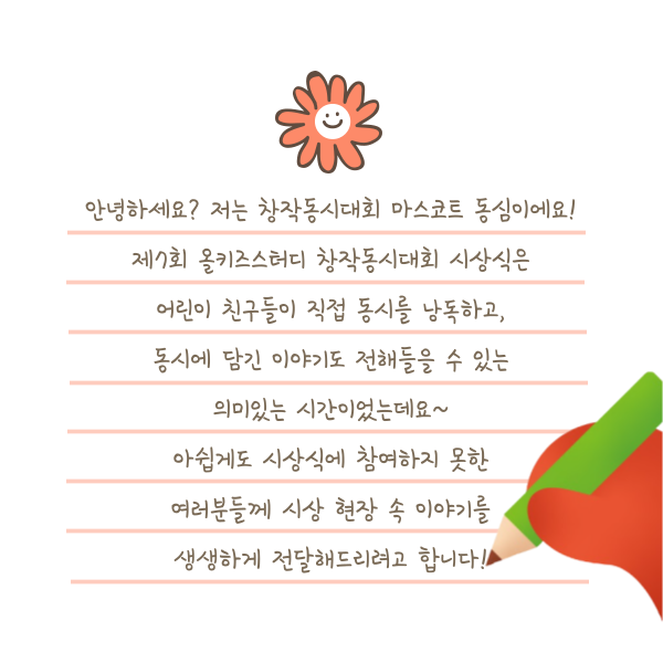 | 아이들이 바라는 세상 들여다보기, 제7회 올키즈스터디 창작동시대회 핵심키워드 및 작품인터뷰 소개 (0) | 2021.09.30 |