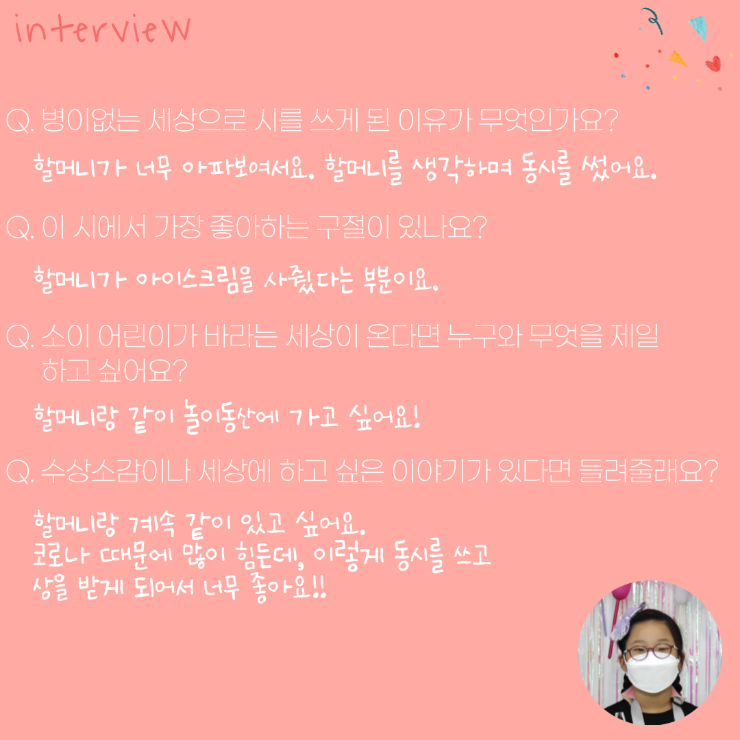 ‘병이없는 세상’이 왔으면 좋겠다고 이야기해줬어요!