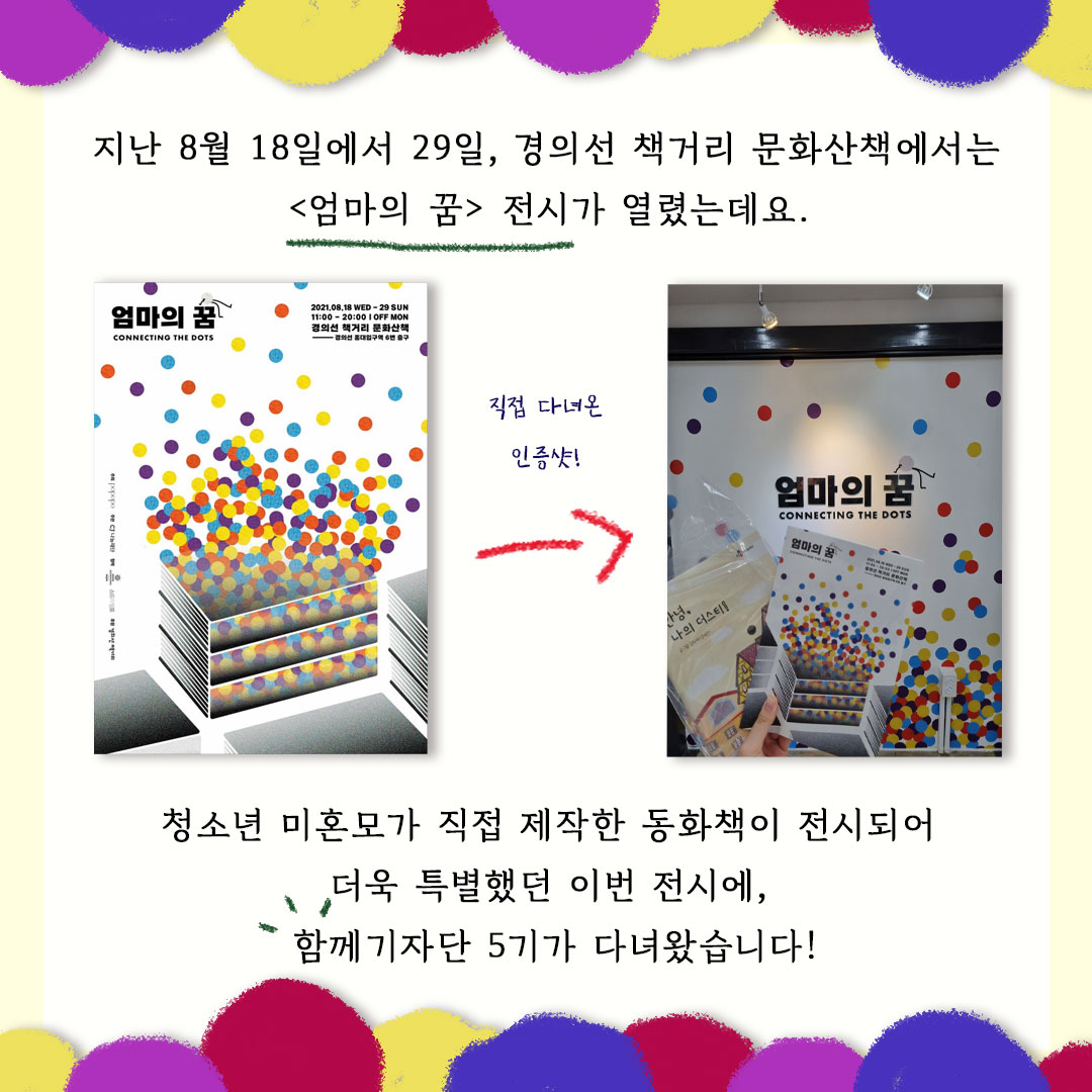 지난 8월 18일에서 29일, 경의선 책거리 문화산책에서는 <엄마의 꿈>전시가 열렸는데요.