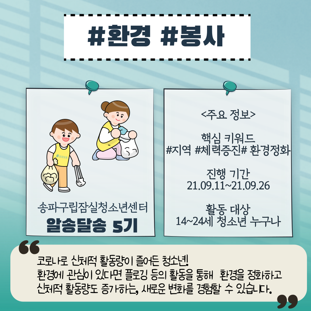 송파구립잠실청소년센터 [ 알송달송 5기 ]