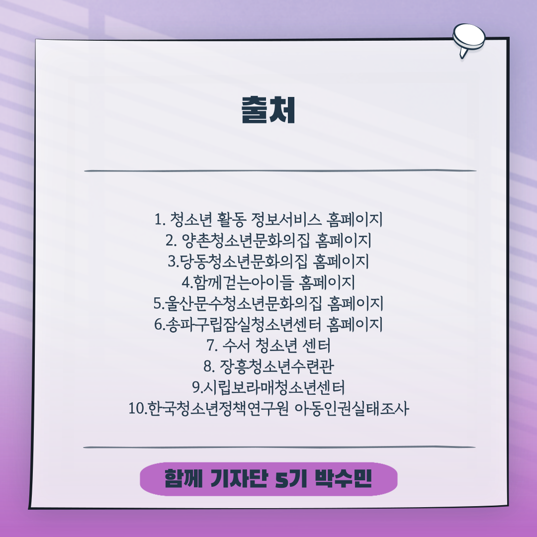 - 한국청소년정책연구원 아동인권실태조사