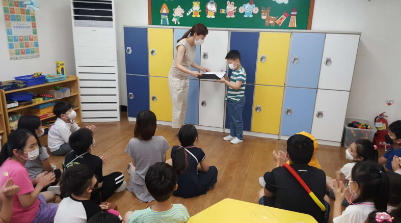 | “수상이라는 쾌거도 얻었는데 센터 종례시간 모든 친구들 앞에서 시상식과 축하의 자리를 함께 나누었어요. 평소 소극적인 아동이 자기표현의 기회도 갖게 되고, 모든 친구들 앞에서 축하와 기쁨, 부러움의 얻게 되며 자신감, 자존감도 향상되는 시간이 되었답니다. 이번 동시대회 참여를 통해 아동들에게 참여하고픈 동기부여도 되었어요.” |