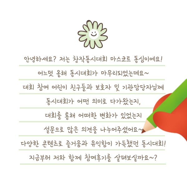 올해 창작동시대회가 어떤 의미로 다가왔을지 저도 너무 궁금한데요~
