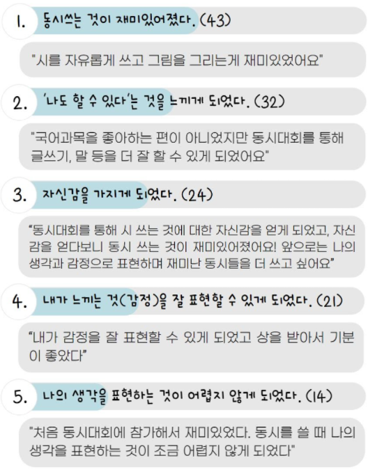 | “시에 대해 거부감없이 다가갈 수 있는 기회가 되었고, 아동들의 마음을 다른 모습으로 보게되었어요” |