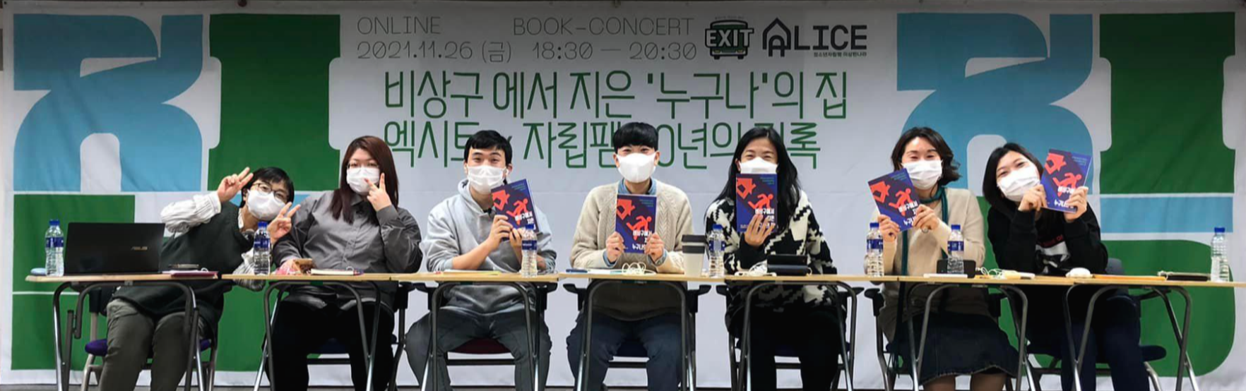 엑시트와 자립팸 10년의 활동을 기록한 '비상구에서 지은 누구나의 집' 엑시트X자립팸 10주년 기록집을 발간하며, 11월 26일 온라인 북콘서트에서 그동안의 활동을 나누는 시간을 가졌습니다.