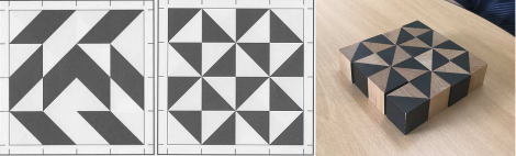*IQ 두뇌퍼즐 : 각각이 대각선 중심으로 대칭되는 패턴인 25개의 정육면체로 이루어져 있으며 각 면들의 조합을 통해 다양한 무늬(패턴)을 만들 수 있다.