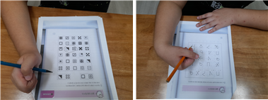 -컬러코드 교구는 색이 화려하고 도형이 크다. 아동은 차시가 지날수록 교구에 익숙해지고 지난 시간에 배운 문제풀이 방식을 다음 시간에 적용하는 모습을 보였다. 쉬운 단계부터 시작하면 아동 스스로 쉽게 접근하고 재미있게 참여하는 교구이다. -같은 그림, 글자, 모양 찾기는 여러 번 되풀이하며 문제를 풀었고, 정답을 맞추는 경험이 쌓이면서 스스로 대견해하여 다른 수업에도 긍정적인 영향을 주었다. 스스로 시간을 재면서 문제풀이를 하는 모습을 보였고, 차시가 지날수록 문제에 집중하는 시간이 길어졌다. 아동이 꾸준히 발전하는 모습을 볼 수 있었다. |