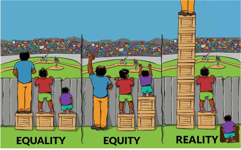 평등과 공평의 의미가 서로 같다고 생각하는 독자들이 많을 것으로 예상된다. 하지만 이 둘의 정의는 유사하면서도 다른 맥락을 가지고 있다. 다음 제시되는 이미지를 통해 그 차이를 알 수 있다.
