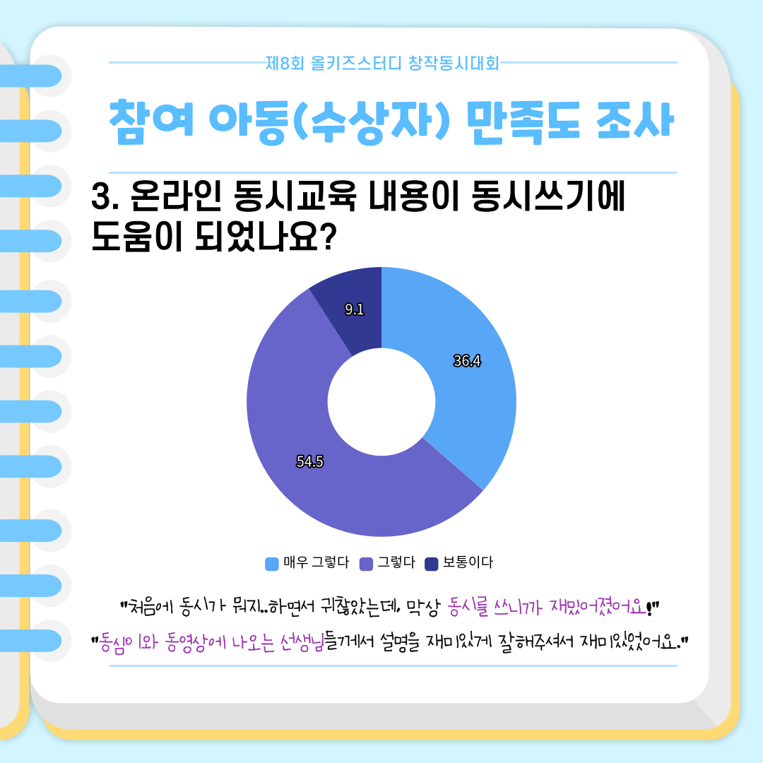 많은 친구들에게 동시대회 참여과정이 재밌게 느껴졌음을 확인할 수 있었어요.