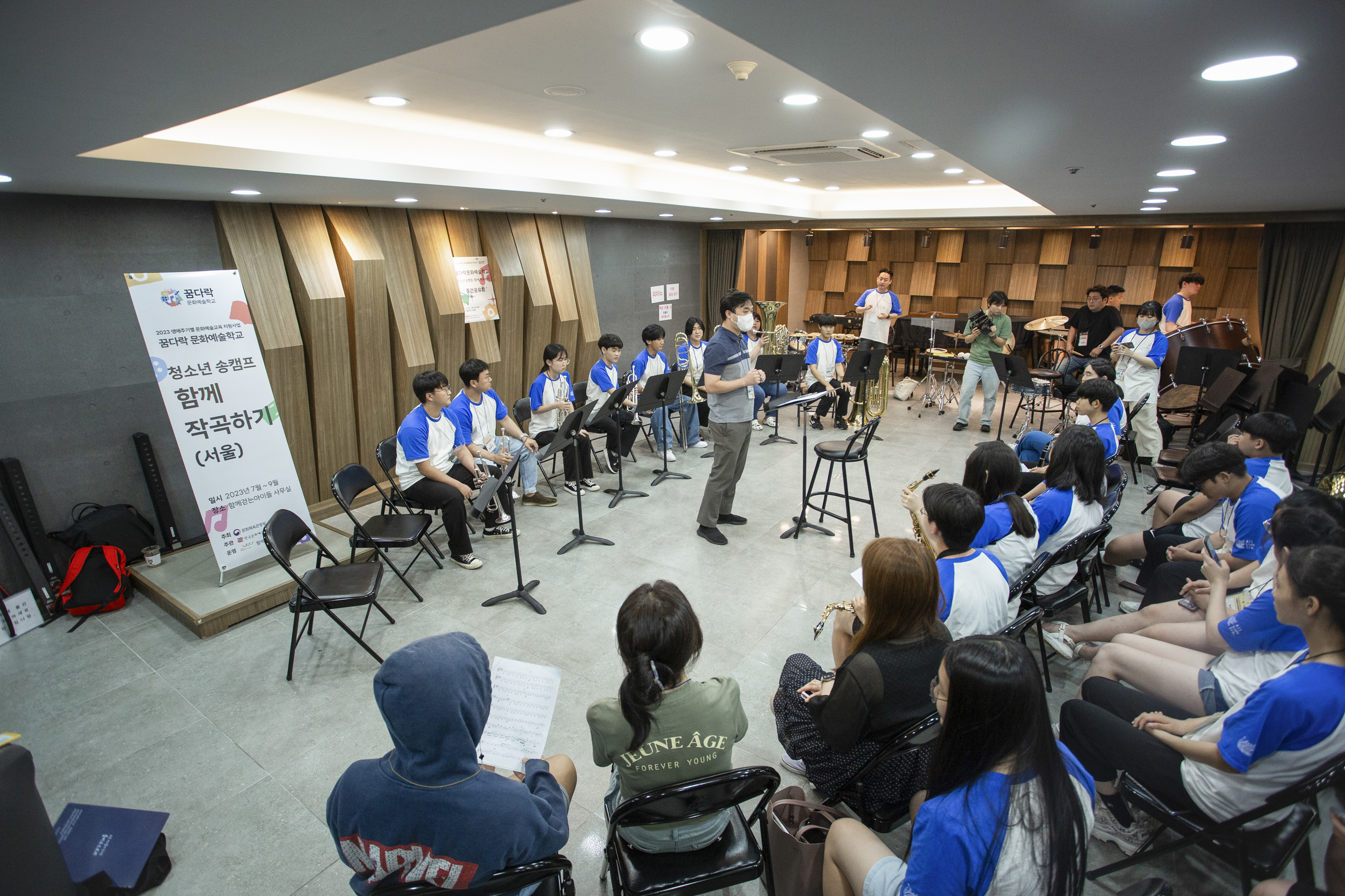 함께걷는아이들은 한국문화예술교육진흥원의 생애주기별 문화예술교육 지원사업인 ‘꿈다락 문화예술학교’ 프로그램으로 ‘청소년 송캠프-함께 작곡하기’를 운영하고 있는데요. ‘함께 작곡하기’는 서울과 경기 2개 권역에서 진행되며, 참여 청소년은 음악을 작곡하고 실제 연주와 녹음을 경험하는 시간을 갖게 됩니다.