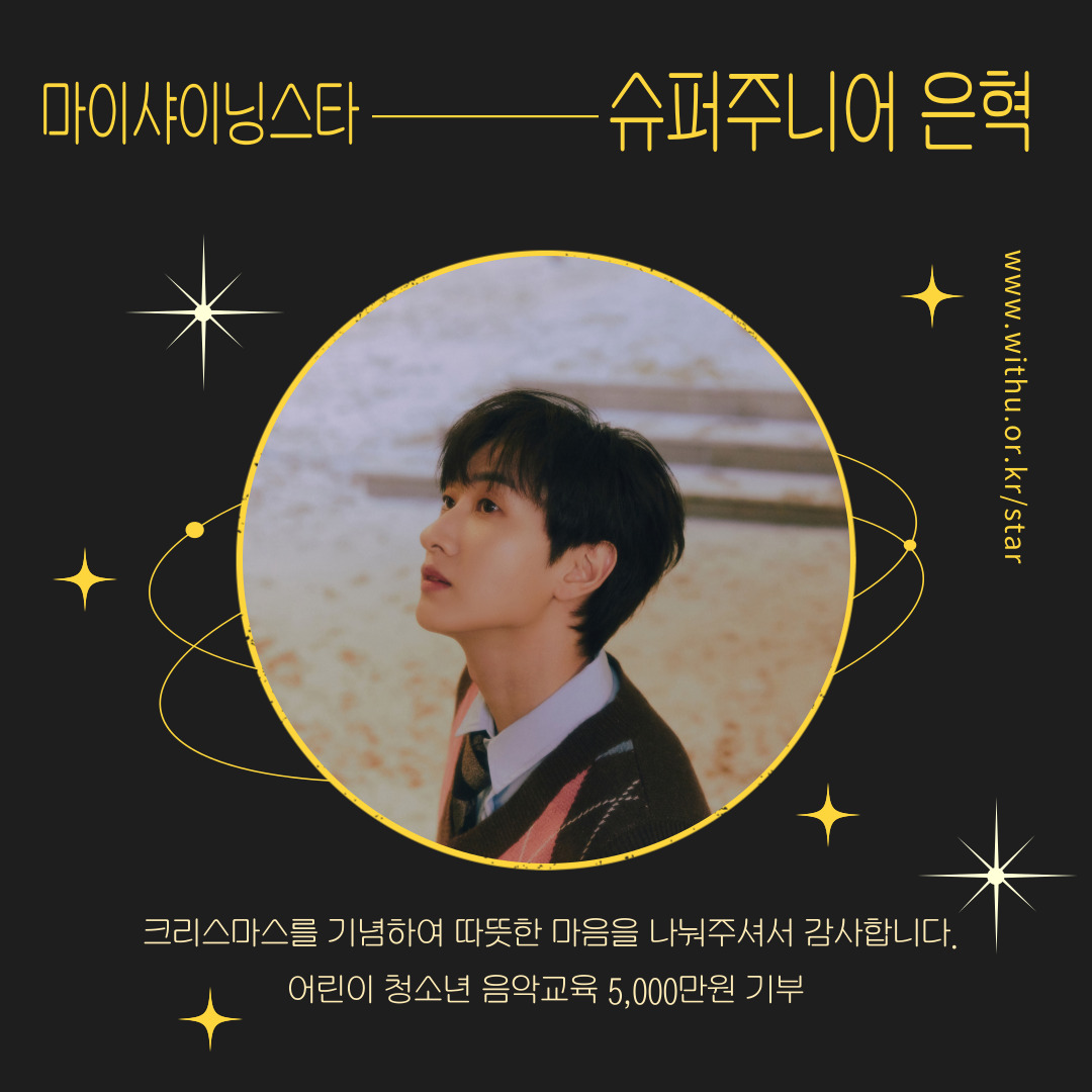 슈퍼주니어 멤버 은혁 님이 크리스마스를 기념하며 5,000만원을 후원해 주셨어요.