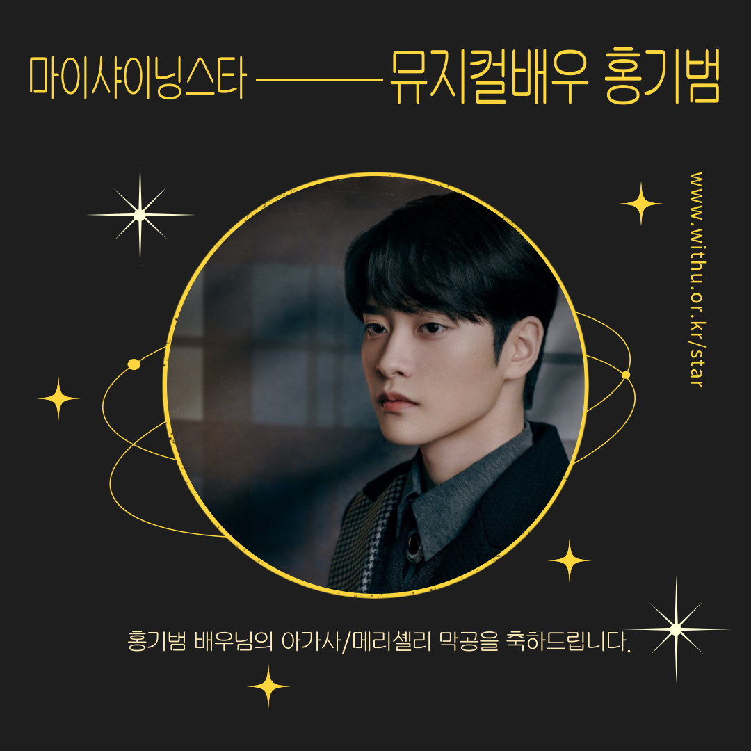 뮤지컬 배우 홍기범님 팬분께서 배우님의 뮤지컬 아가사, 메리셸리 막공을 축하하며, 마이샤이닝스타에 후원해 주셨어요.