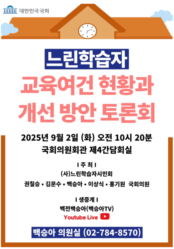 지난 9월 2일, 국회에서는 ‘느린학습자의 교육여건 현황과 개선방안’ 토론회가 열렸습니다.