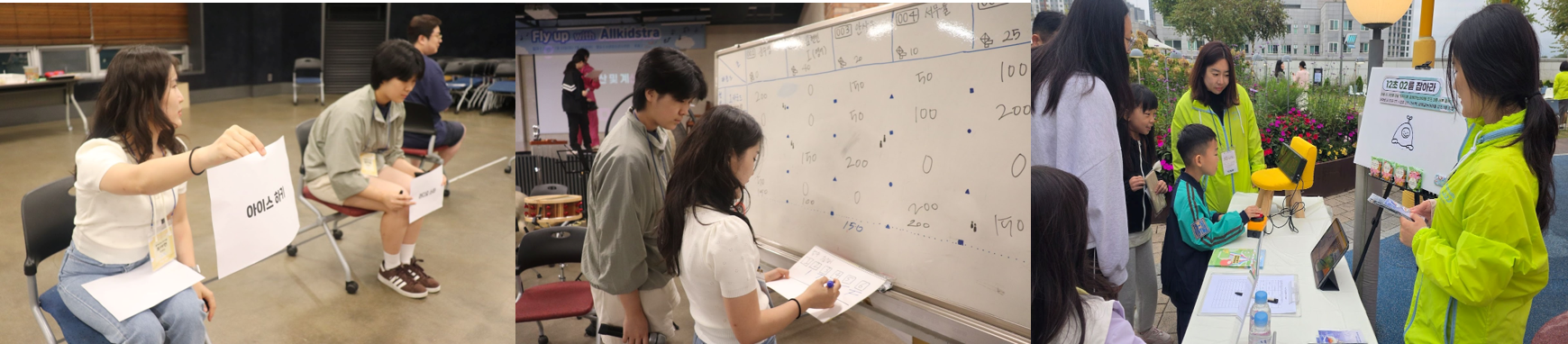 그리고 다함께 음악캠프에 참여했던 경험도 정말 추억으로 남을 것 같은데요, 아이들팀(음악팀)과 함께 현장에서 어린이들과 소통하고, 캠프 프로그램을 할 수 있어서 너무 재밌었습니다. 저는 이때 사진 촬영을 담당했는데, 꿈에 그리던 캐논 카메라를 잡아볼 수 있어서 덕업일치(?)했습니다. 최근에는 부천 스타필드에서 홍보부스 업무를 하며, 예비 관객들과 소통하고, 선물을 나누는 과정에서 보람을 느꼈습니다. 특히 홍보부스 테이블 양옆에 제가 디자인한 폼보드와 배너가 있어서 뿌듯하기도 했습니다.